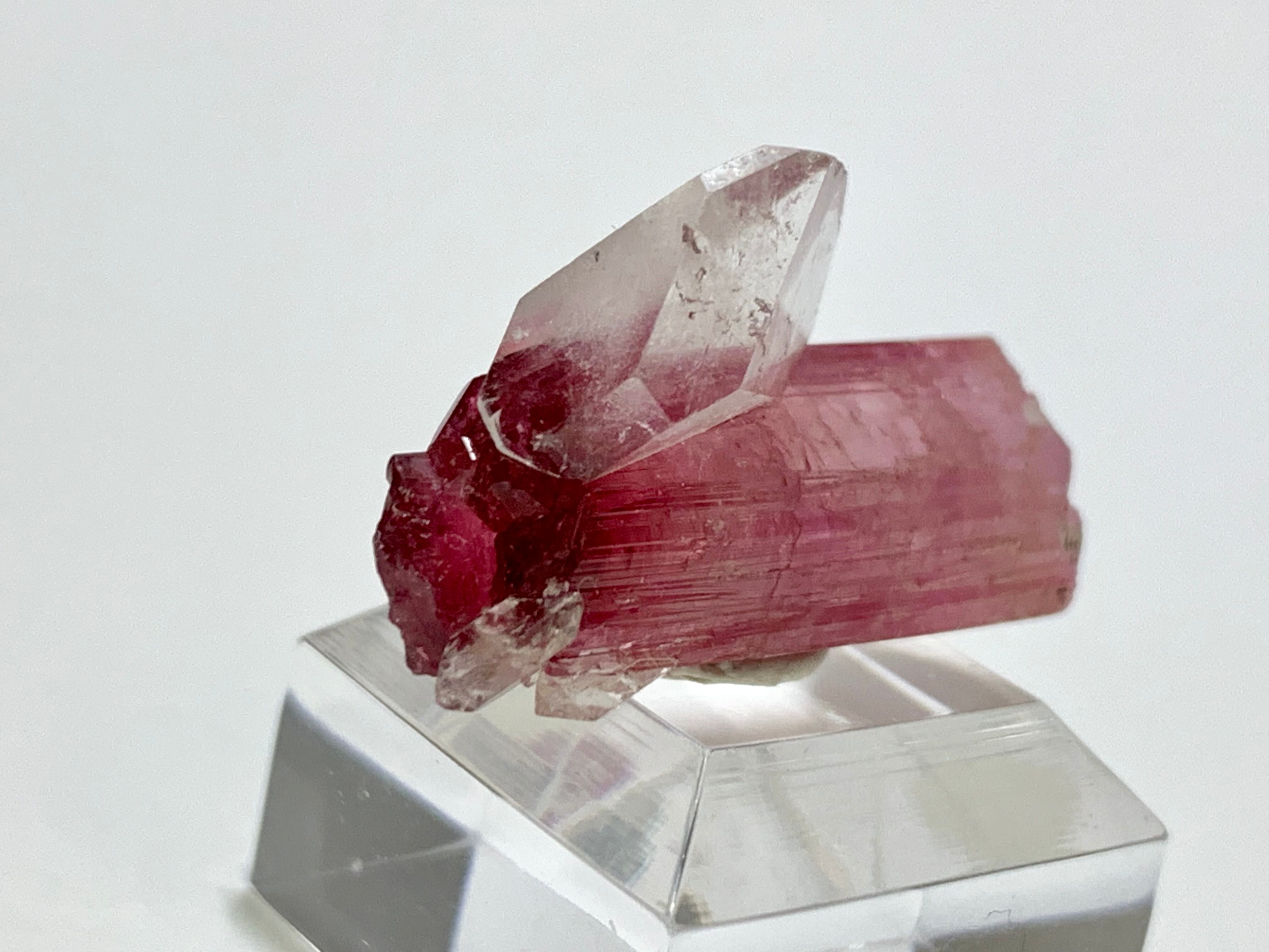 濃い赤色のヘッドにクォーツが刺さるようにして共生しています。