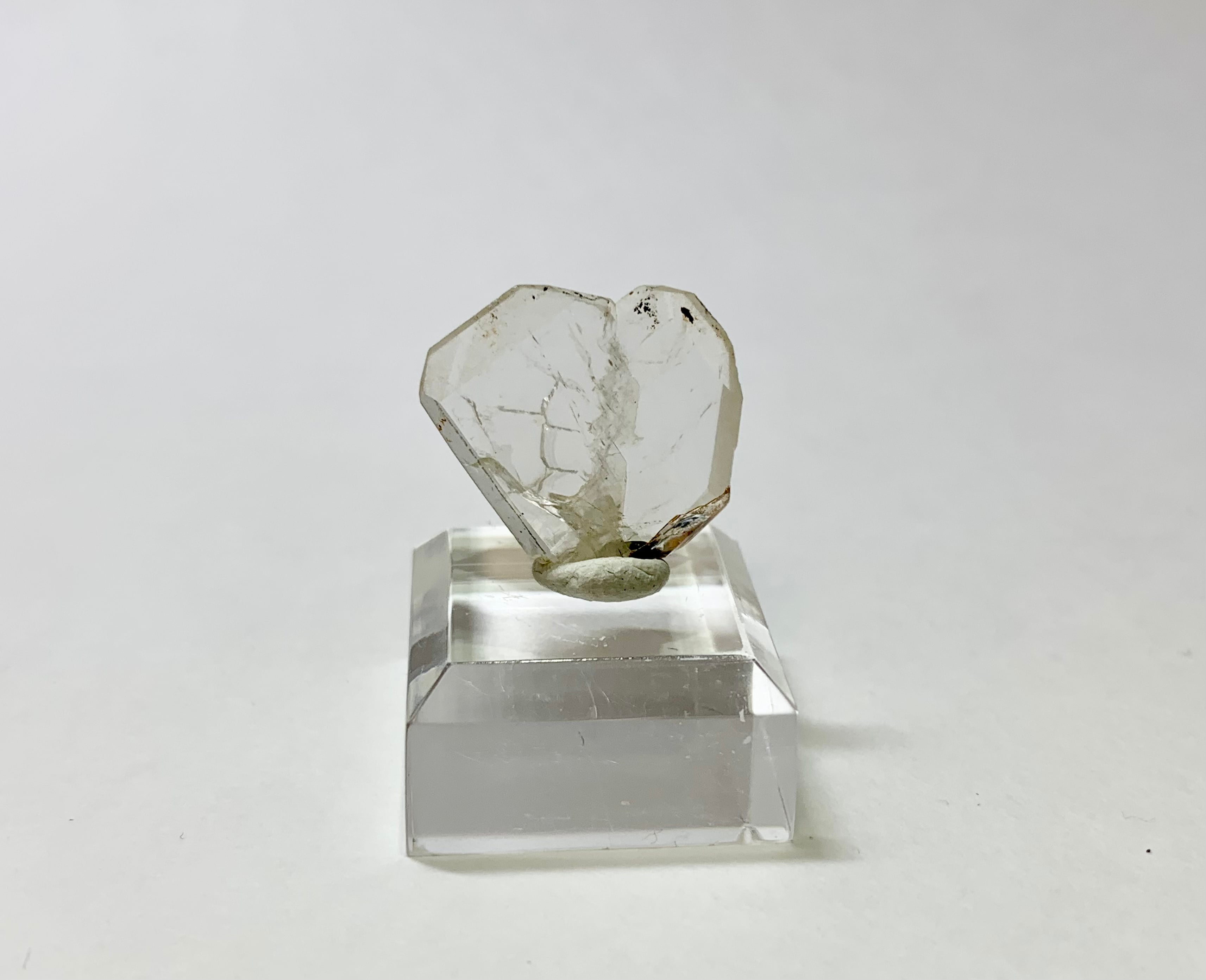 きれいな形に整っていて、表面にもくっきりと双晶の形に沿って条線が刻まれています。