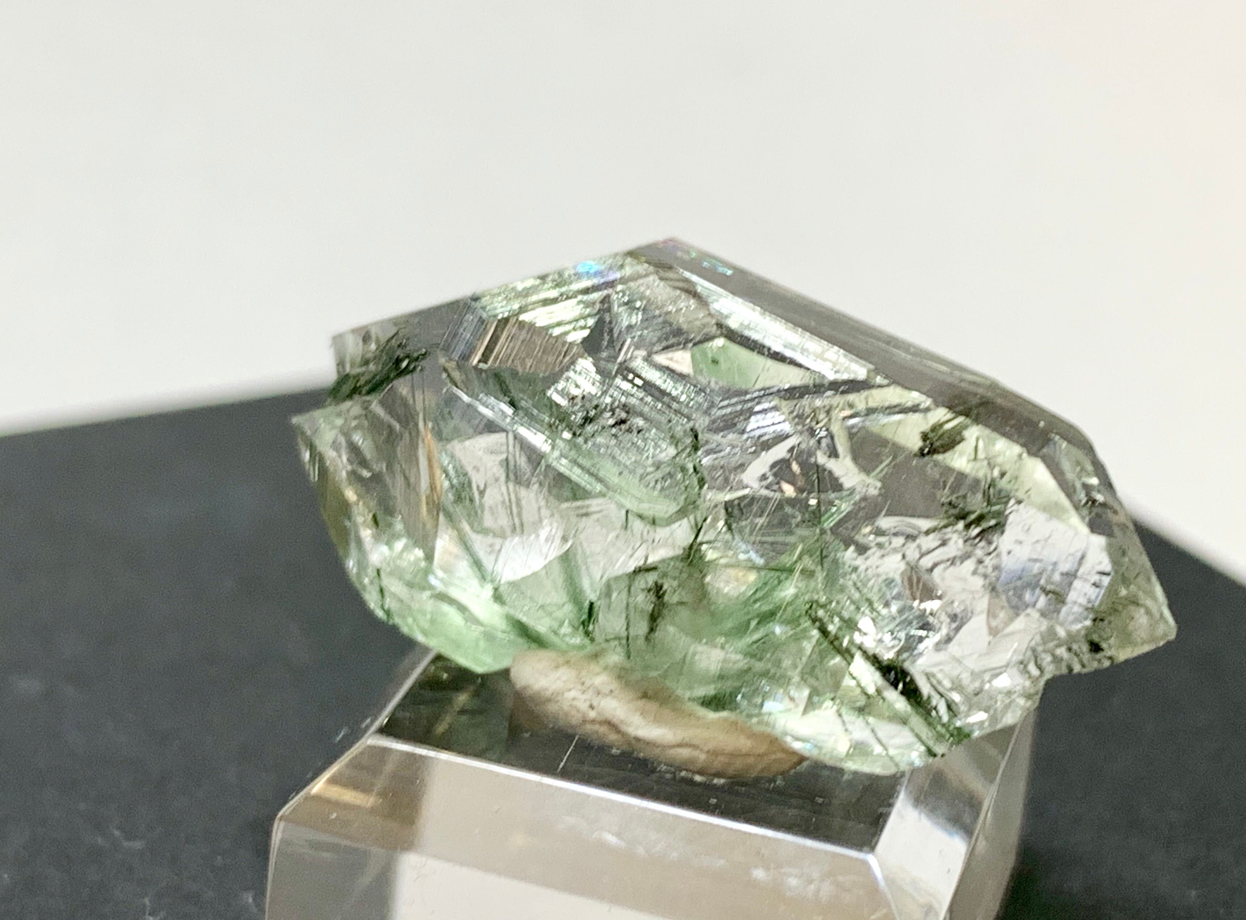 ここまで透明でかつ両錐のクォーツに、緑の発色が良いアクチノライトが内包されている標本は初めて見ました。